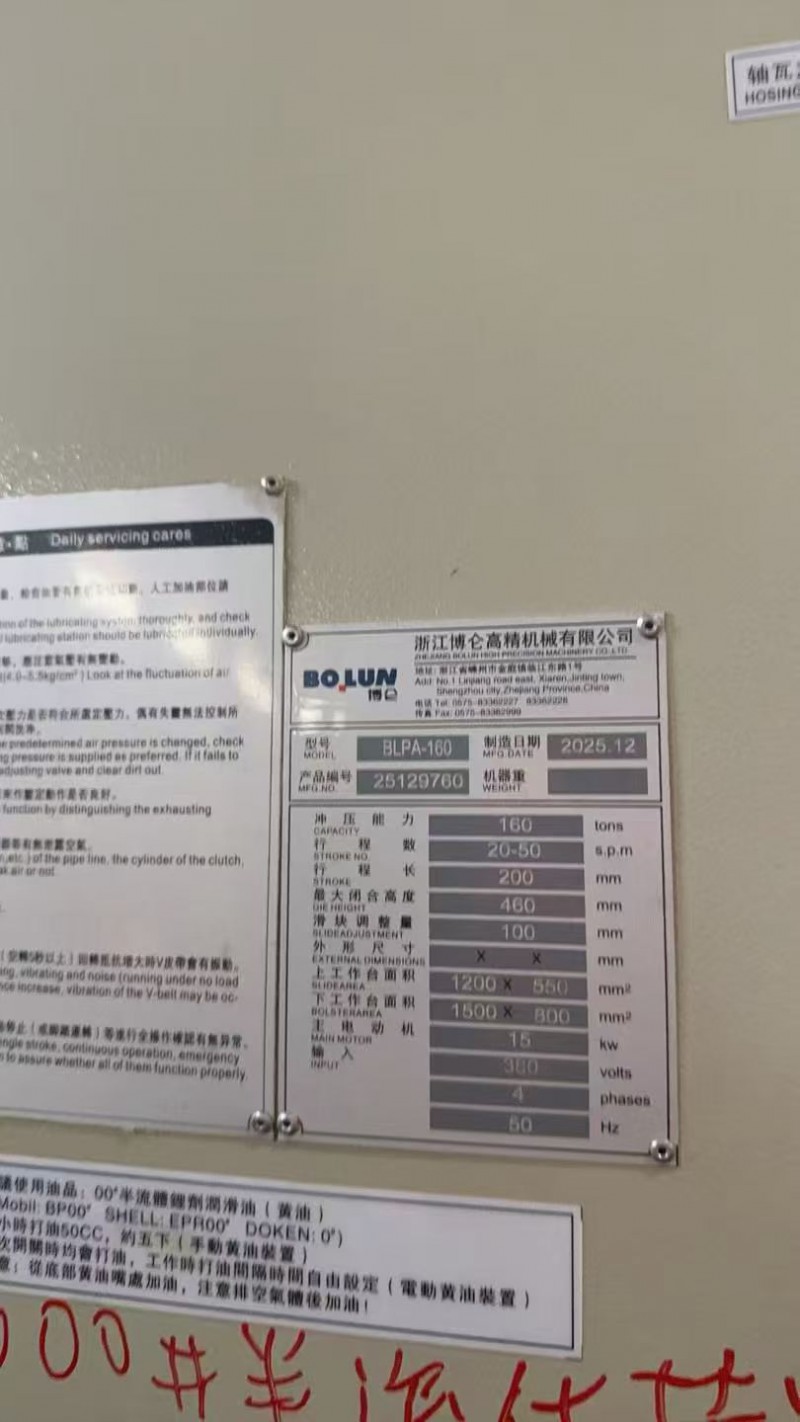广东在位出售:加大台面的全新博伦160吨冲床、博伦200吨闭式双点两台,13393360913